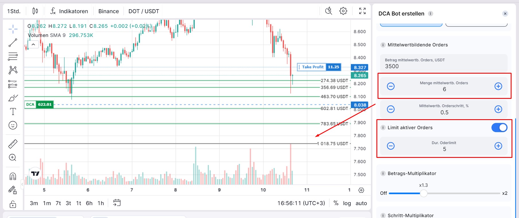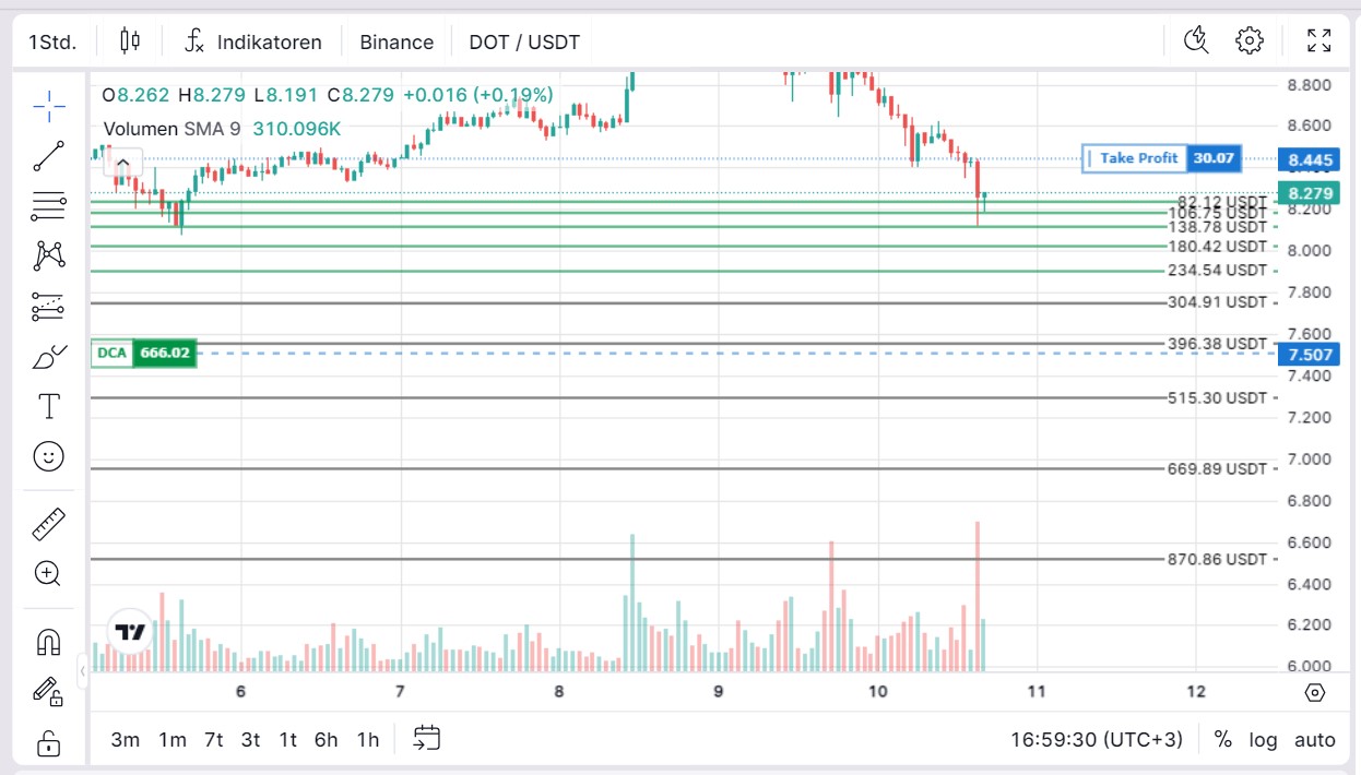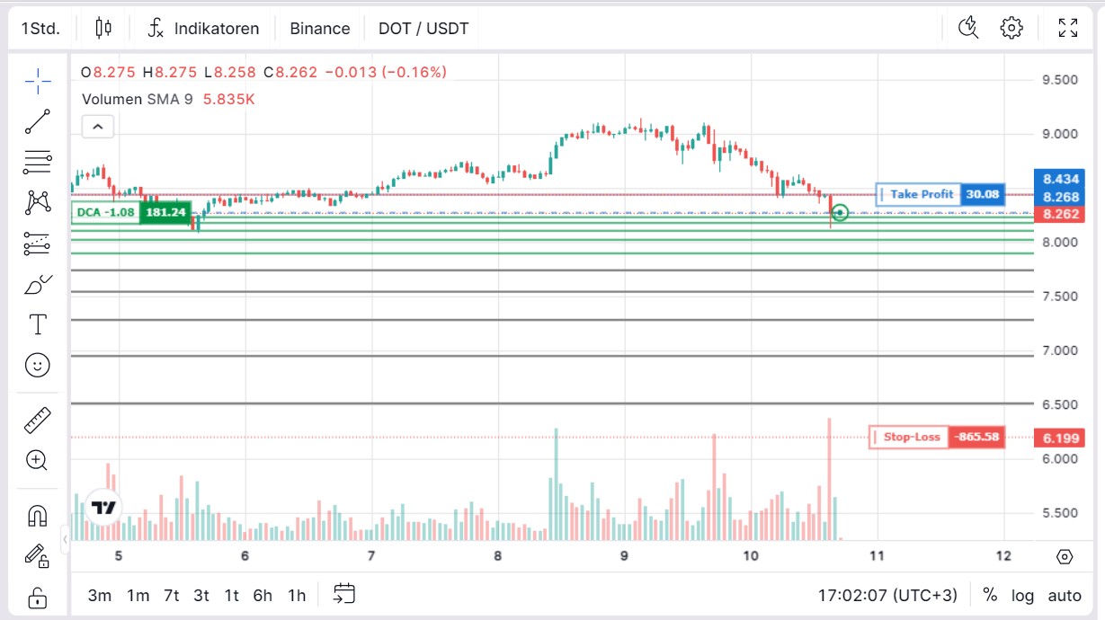 Betrachten wir folgendes Setup für das Handelspaar DOT/USDT: