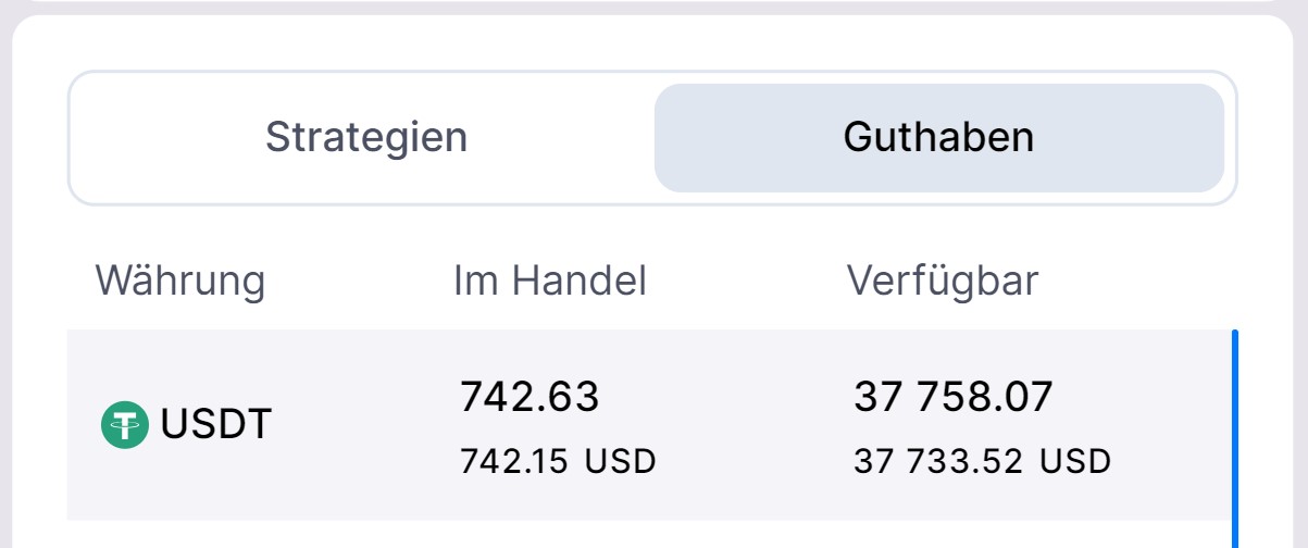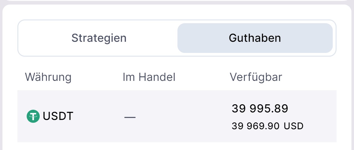 Verfügbares Guthaben: 39,995.89 USDT