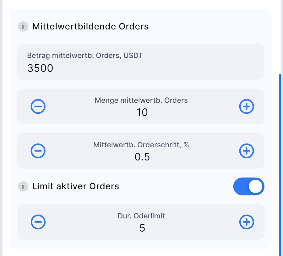 Die Funktion Begrenzung aktiver Orders bei DCA-Bots bietet Tradern mehr Flexibilität und Kontrolle über ihre Handelsstrategie. Durch die Begrenzung der Anzahl gleichzeitig platzierter Durchschnittsorders können Trader eine Überfüllung des Orderbuchs vermeiden und sich dennoch auf profitable Trades positionieren. Diese Methode spart nicht nur Guthaben, sondern stellt auch sicher, dass die Mittel des Bots effizient genutzt werden.