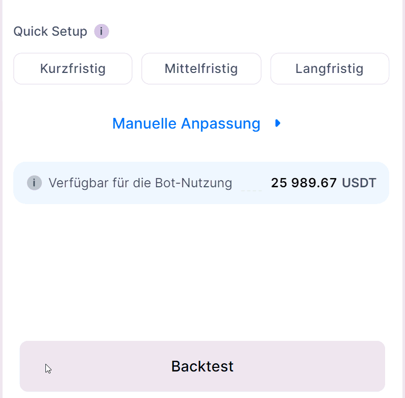 Erweiterte DCA-Bot-Einstellungen: Schalte erweiterte Konfigurationsoptionen frei, um deine Handelsstrategie weiter zu optimieren.