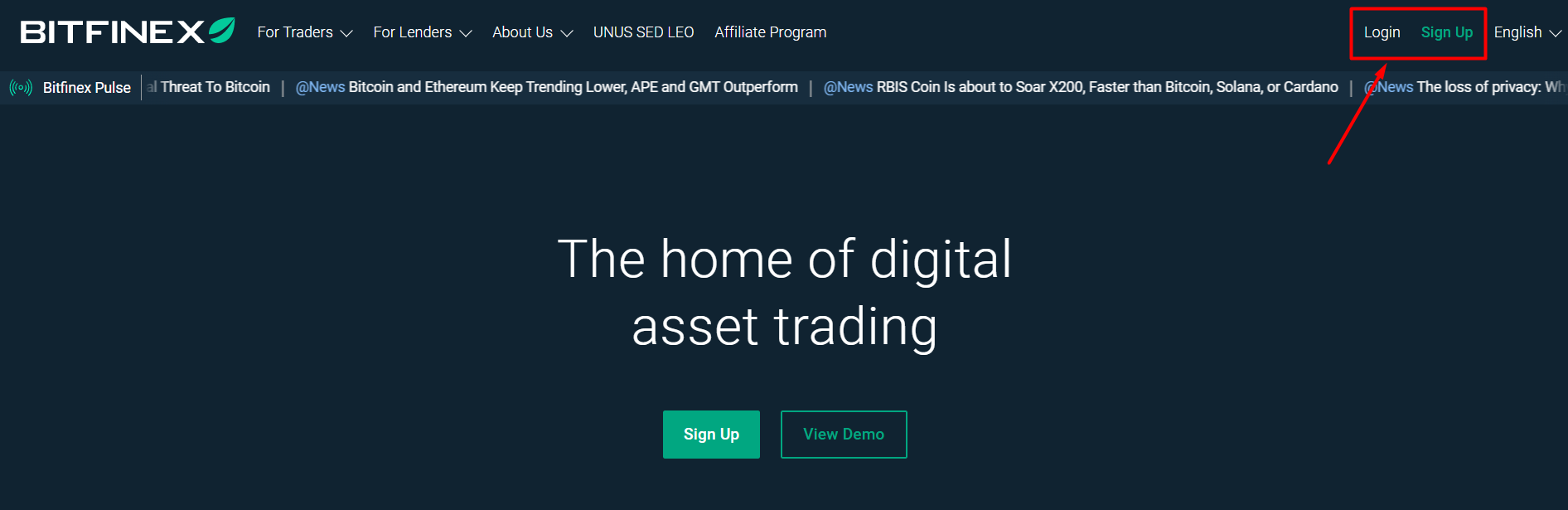 Melden Sie sich in Ihrem Bitfinex-Konto an, oder erstellen Sie ein neues.