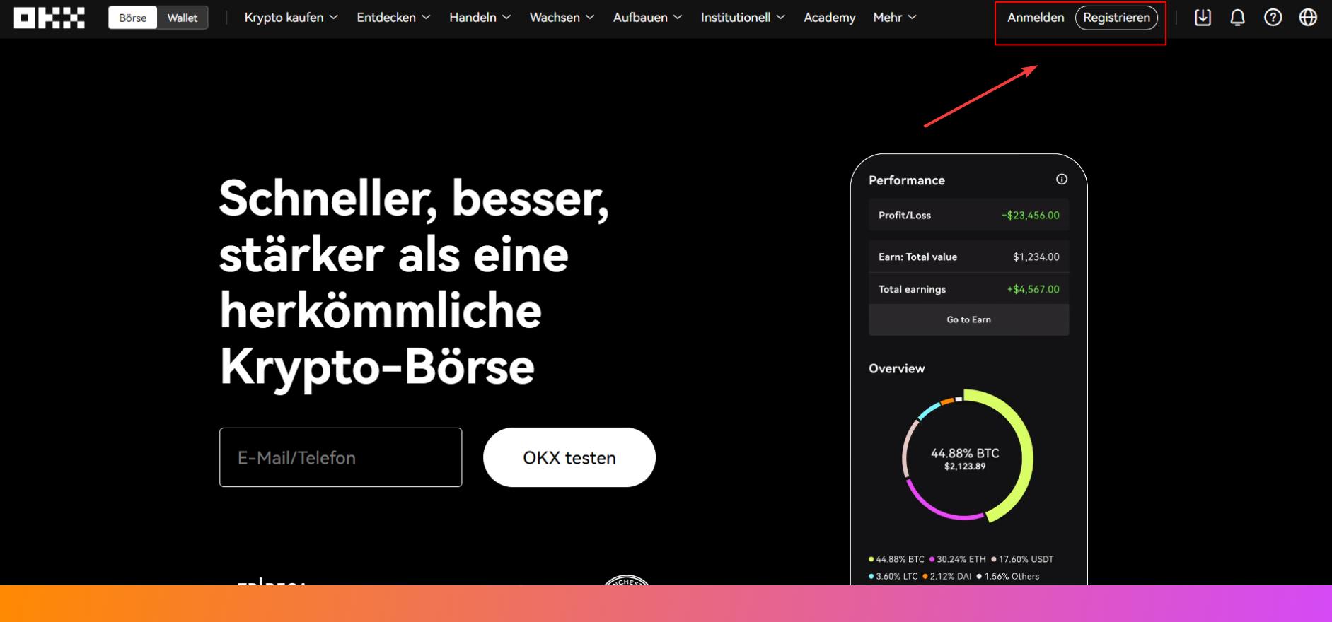 Melden Sie sich in Ihrem OKX-Konto an, oder erstellen Sie ein neues.