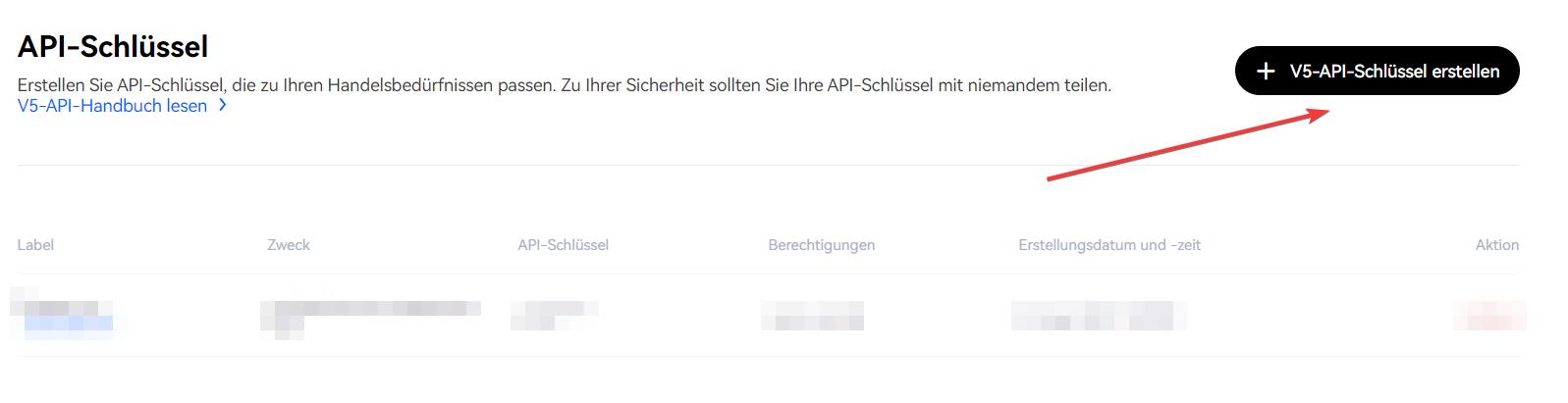 Klicken Sie auf [V5 API-Schlüssel erstellen], um fortzufahren.