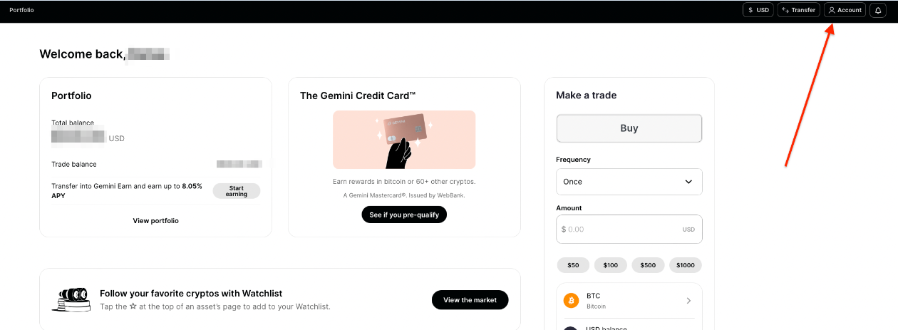 Melden Sie sich in Ihrem Gemini-Konto an, oder erstellen Sie ein neues.
