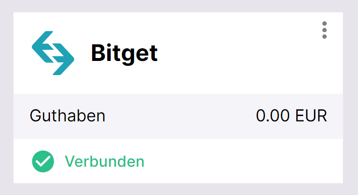 Wenn alles geklappt hat, sehen Sie Bitget an in der Liste Ihrer verbundenen Exchanges mit dem Status „Verbunden“ und dem Saldo Ihres Trading-Kontos.