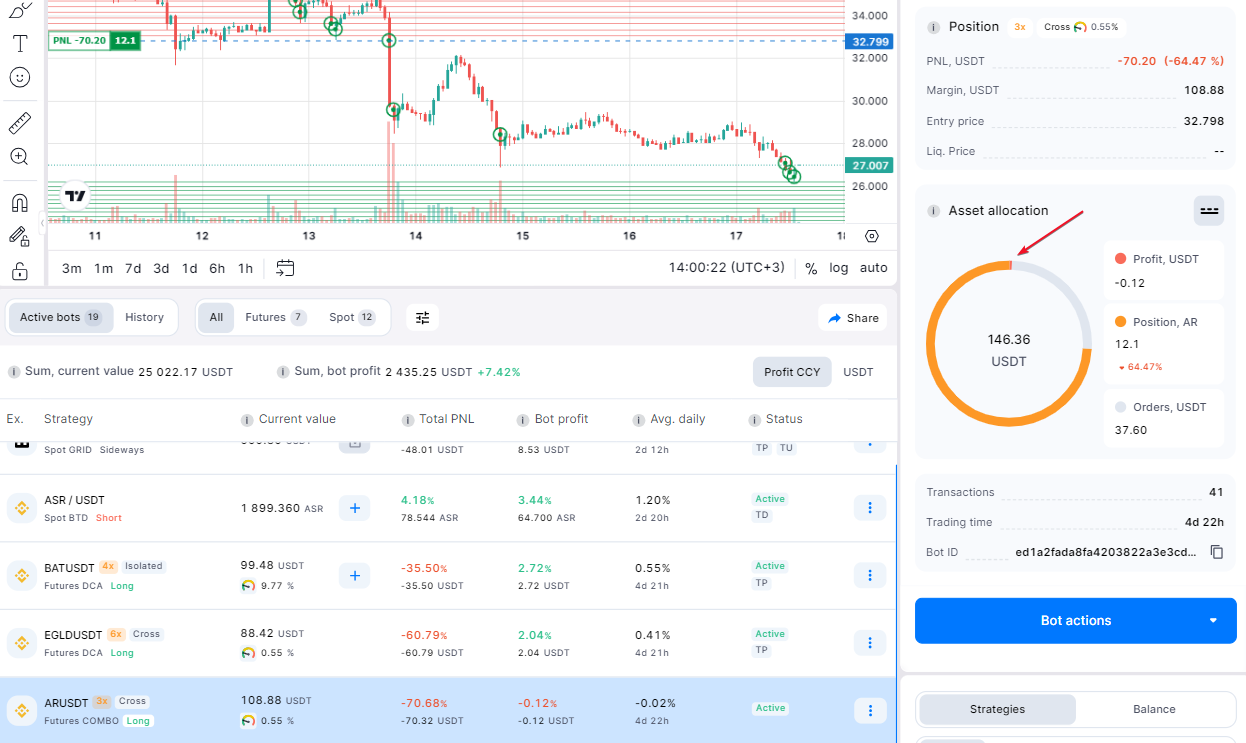 We have added a graphical representation of negative bot profit to the Asset Allocation section in the Bot Performance window. This feature provides a clear, visual way to track performance of your bots.