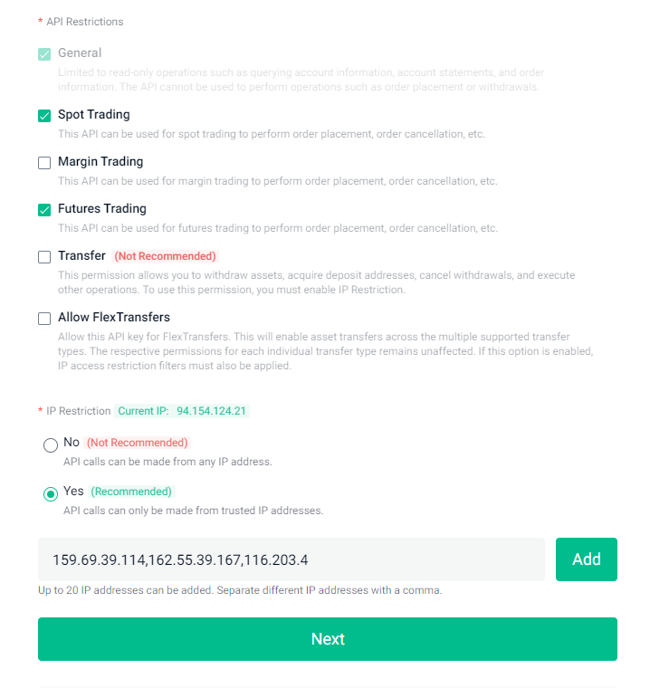 - Avoid enabling deposit and withdrawal permissions to protect your funds.