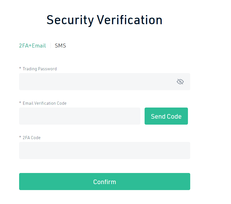 - Enter your trading password, email verification code, and 2FA code. Confirm to create the API key.