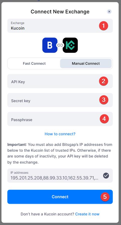 - Choose Kucoin from the list and select the Fast Connect option. Click [Connect].