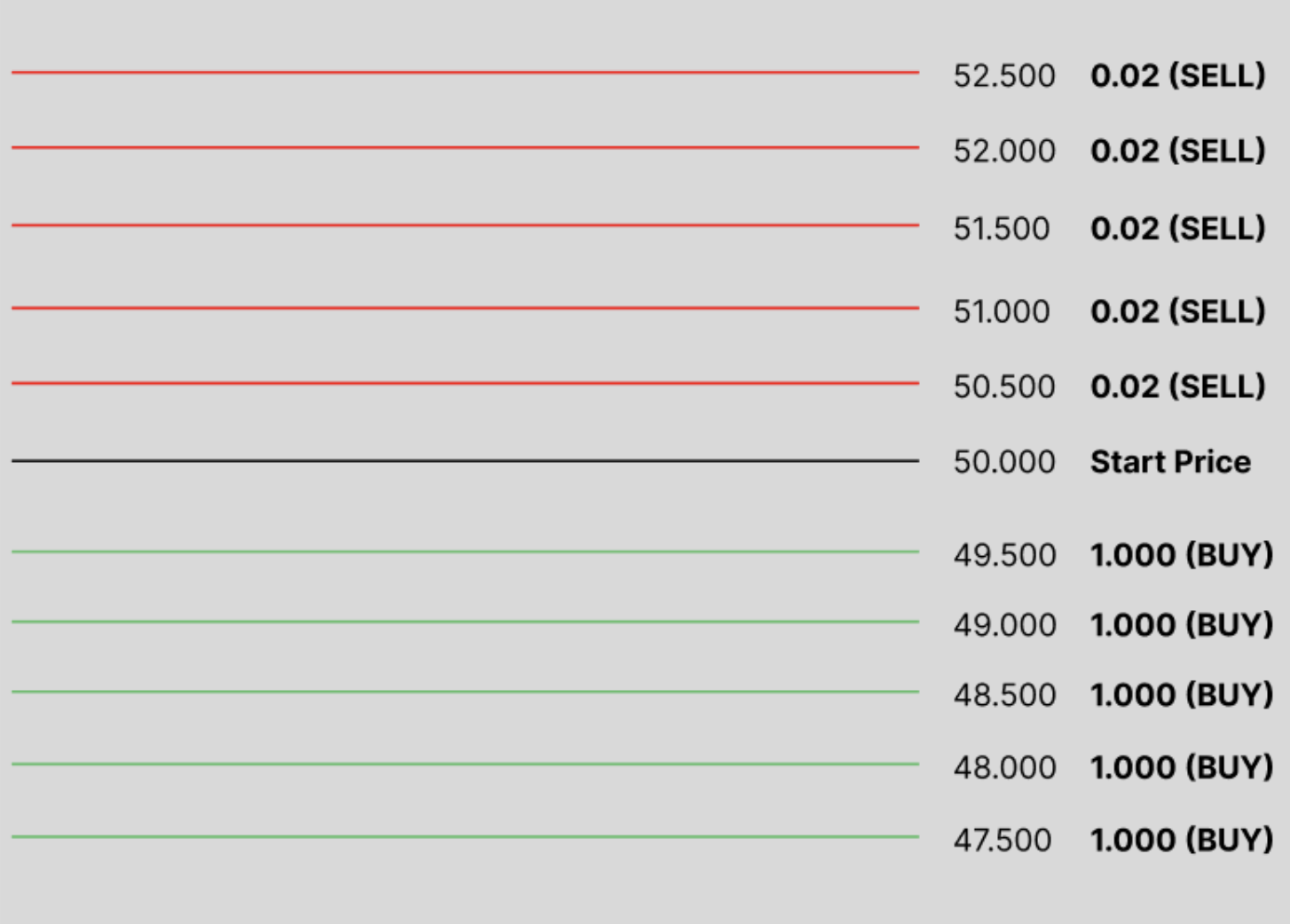 - Fixed Entry Price: Central point for all grid calculations.