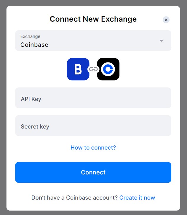 8. Select Coinbase and Enter API Information: