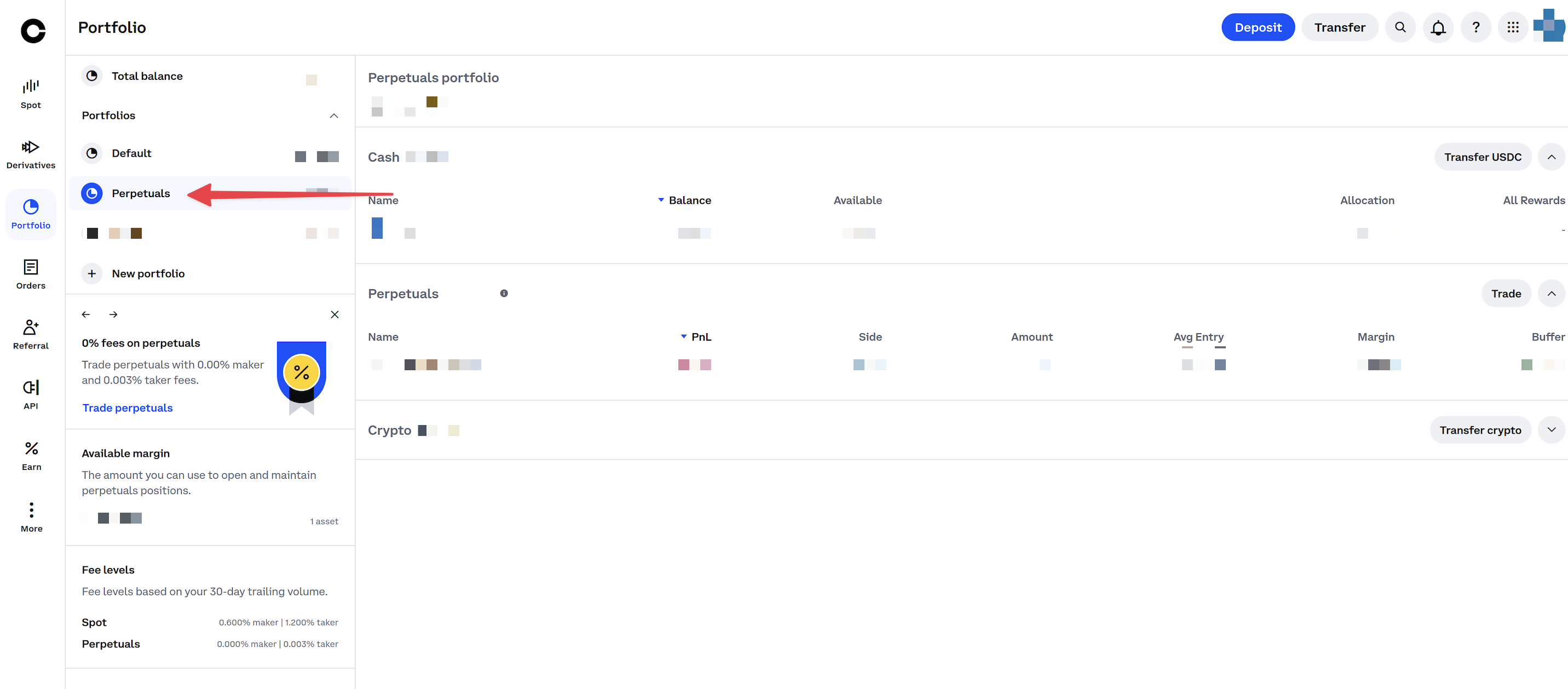After enabling futures, you'll see Perpetuals under the Portfolio section.