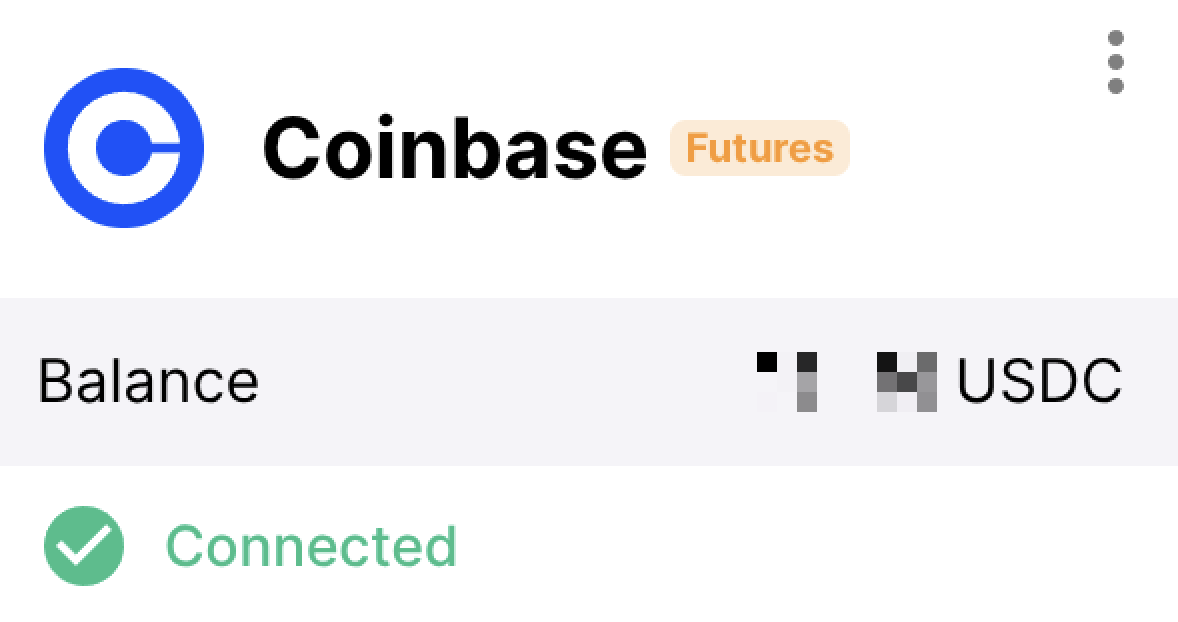 After successful connection, you should see Coinbase Futures listed as a connected exchange with a Connected status. Your available trading balance will also be visible in your Bitsgap account.