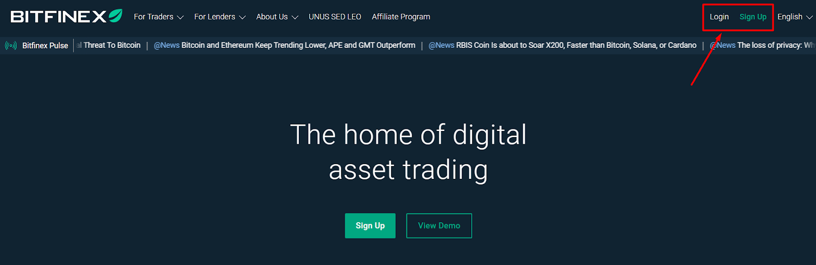 Log in to Bitfinex: