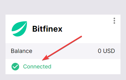 If everything is done correctly, Bitfinex will appear on your list of connected exchanges with a Connected status. Your available trading balance will also be displayed in your Bitsgap account.