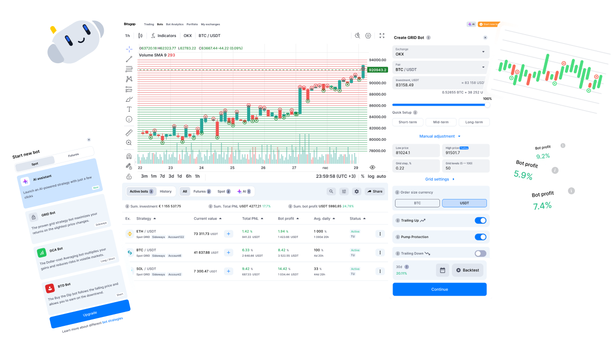 Descubra su bot de cripto trading ideal con Bitsgap — compare y elija la estrategia perfecta para mejorar su trading de criptomonedas.