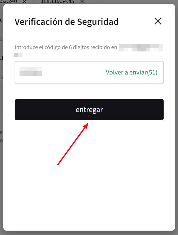 Recibirá un correo electrónico de Poloniex con un código. Pegue el mismo en la ventada de verificación de seguridad y haga clic en [Entregar].