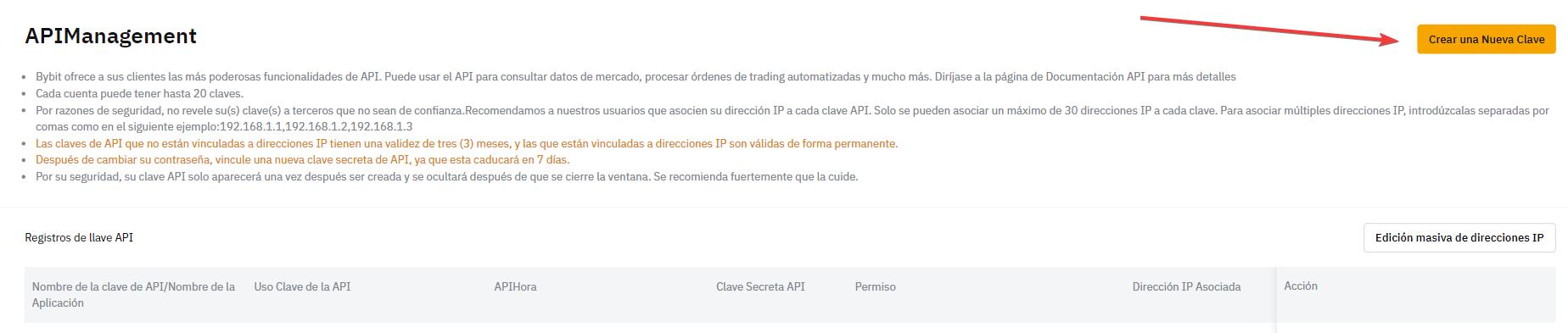 Creando una clave API de Bybit