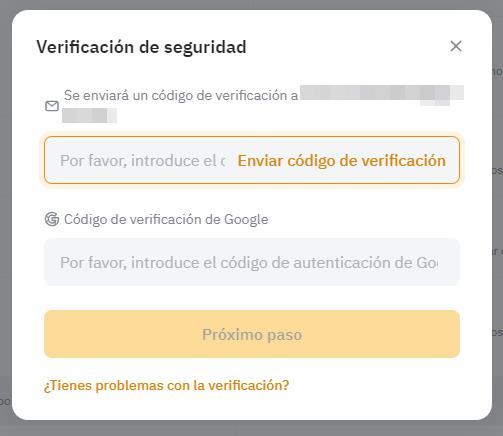 Introduzca el código de verificación enviado a su correo electrónico y los códigos 2FA para completar la verificación de seguridad.