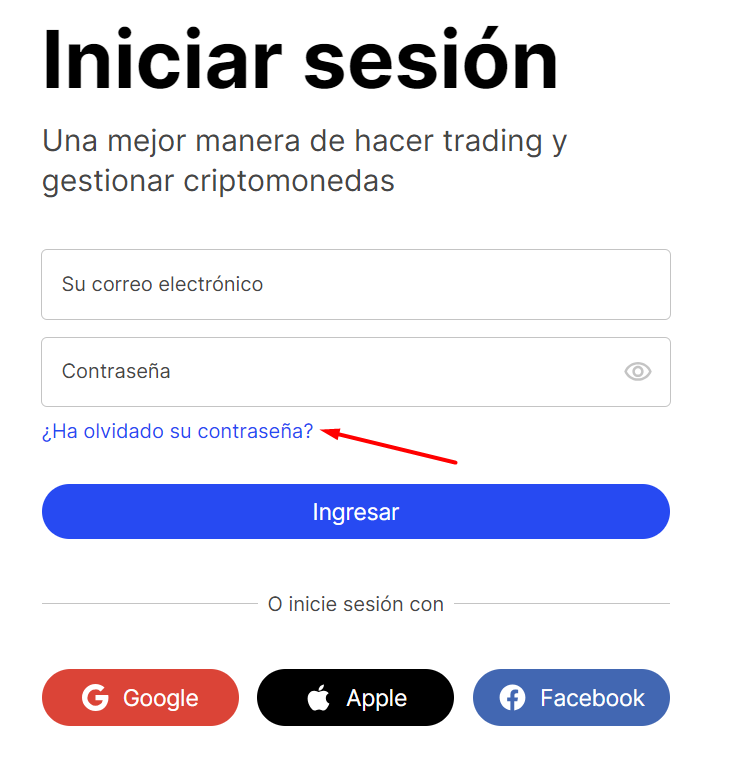 Este enlace redirigirá a la página Restablecer contraseña. Introduce tu email y solicita un enlace de recuperación. La instrucción se enviará a tu email en 5 minutos. Si no ves el email de restablecimiento de contraseña en tu inbox, por favor, verifica las carpetas de Spam, Junk y Promotions.