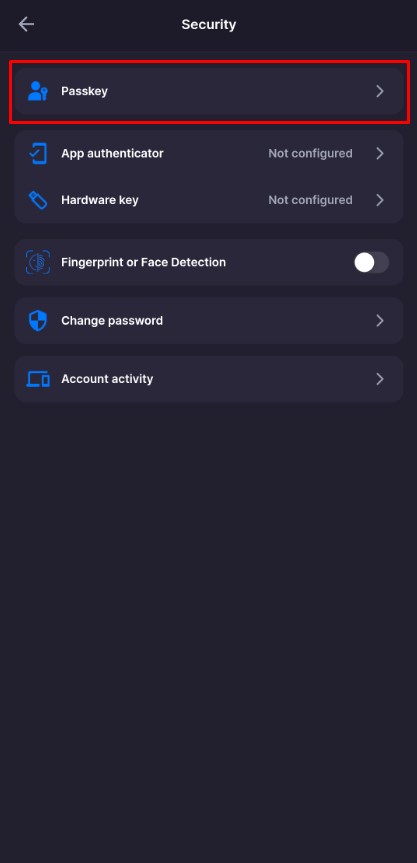 Ouvrez Settings → Security → Passkey dans l’application.