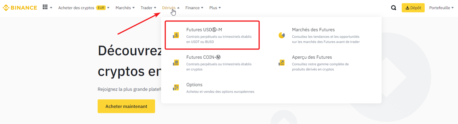 1. Sur le menu choisissez Dérivés --> Futures USDS-M.