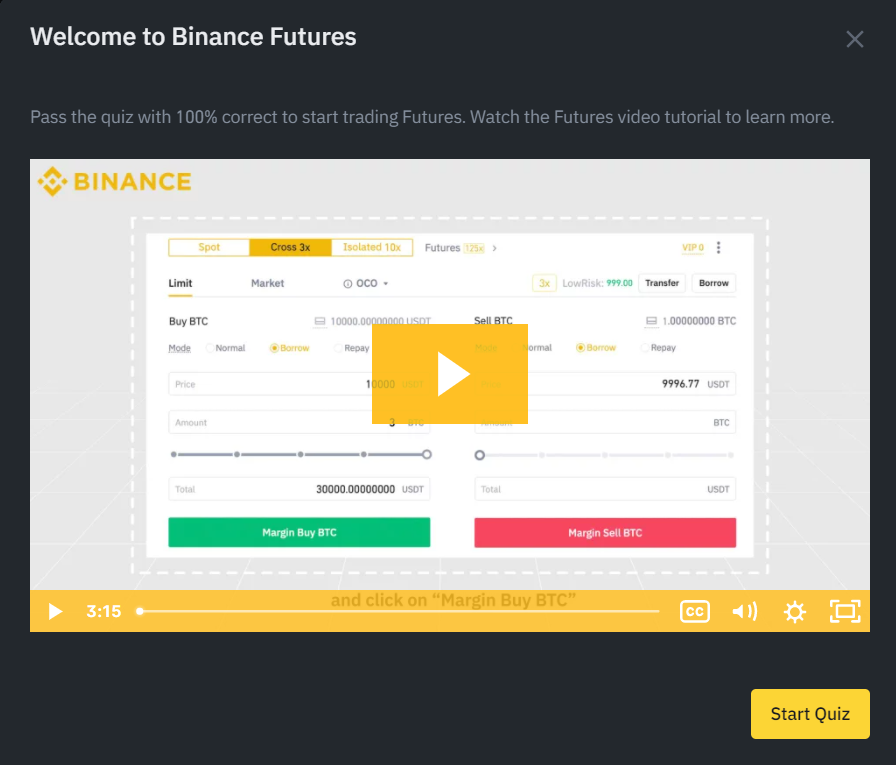 Suivant ce lien, vous trouverez une vidéo qui couvre toutes les étapes de l'ouverture d'un portefeuille Futures sur Binance.