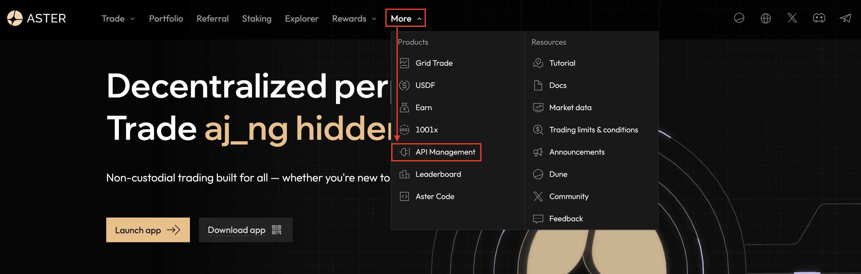 - Aster affichera l’adresse du portefeuille API (clé API) ainsi que la clé secrète — copiez-les et conservez-les en lieu sûr.