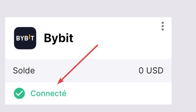 Si tout se passe bien, vous constaterez que Bybit a été ajouté à la liste de vos échanges connectés avec le statut Connecté et le solde de trading disponible sur votre compte.