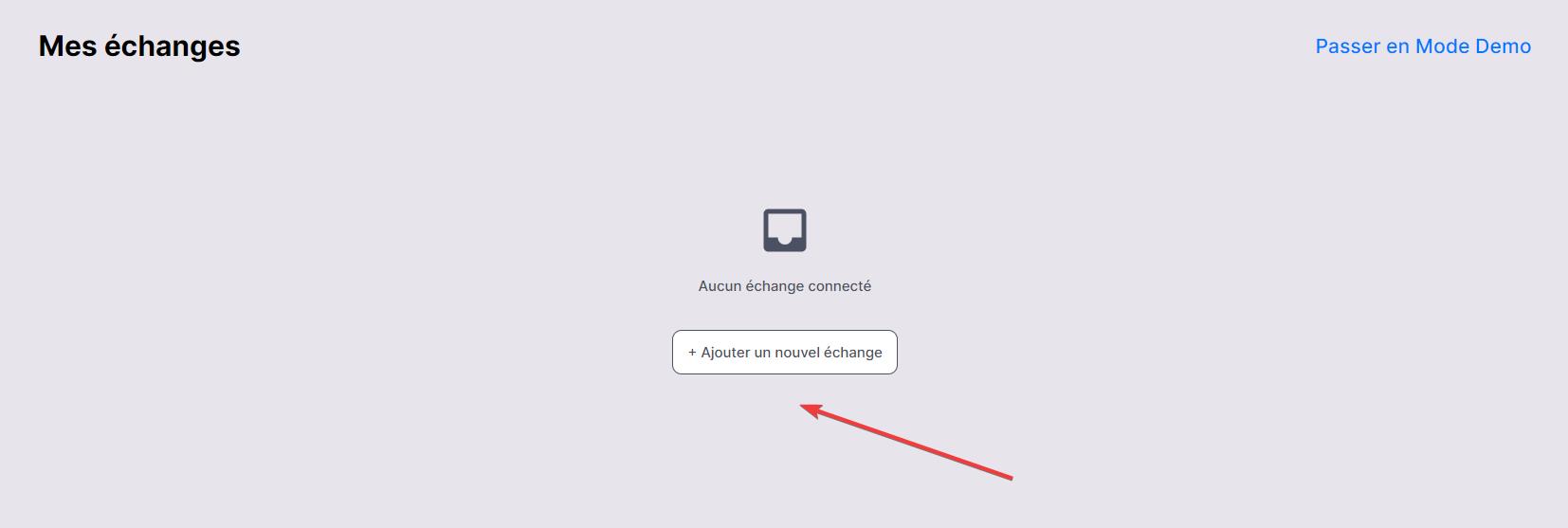 Connectez-vous à votre compte Bitsgap et rendez-vous sur la page Mes Échanges. Cliquez sur [Ajouter un nuovel échange].