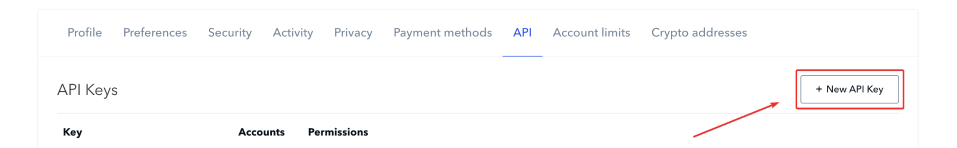 Pour créer une nouvelle clé API, cliquez sur le bouton [New API Key] (Nouvelle Clé API) dans l'onglet API.