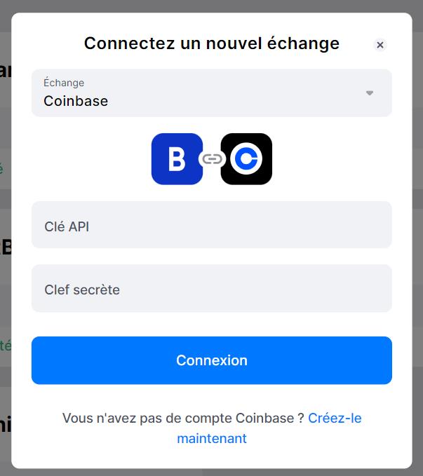 Pour ajouter vos clés API pour Coinbase Advanced Trade, recherchez la bourse dans la fenêtre contextuelle.Vous accéderez ainsi à la fenêtre dans laquelle vous pourrez ajouter vos clés.