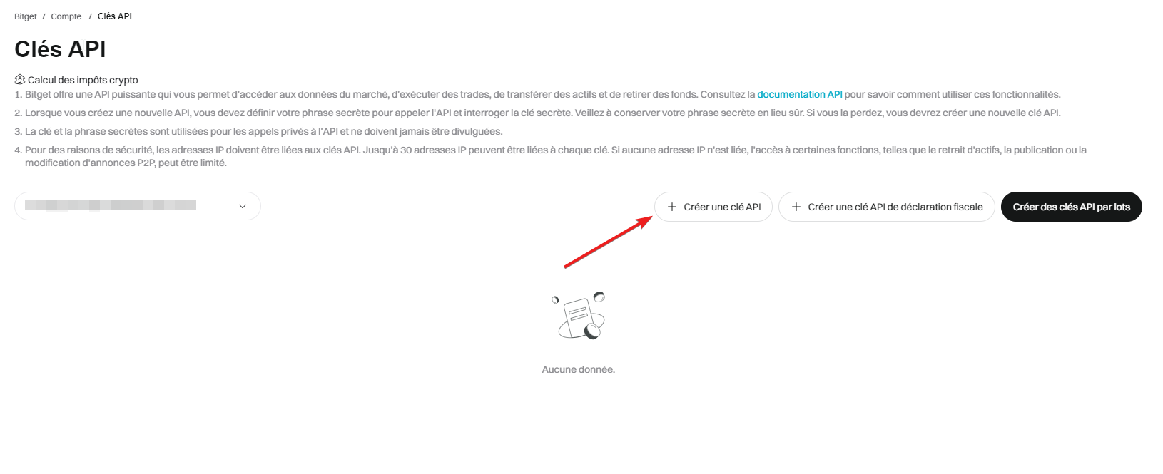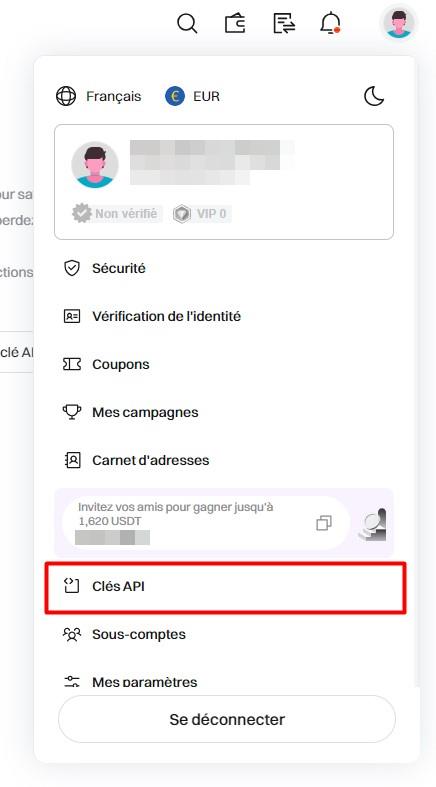 Depuis le profil de votre compte, accédez à la page «Clés API».