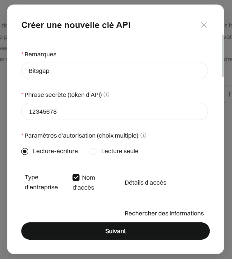 Attribuez à votre clé API un nom quelconque, afin que vous puissiez facilement comprendre que cette clé est liée à votre compte Bitsgap.