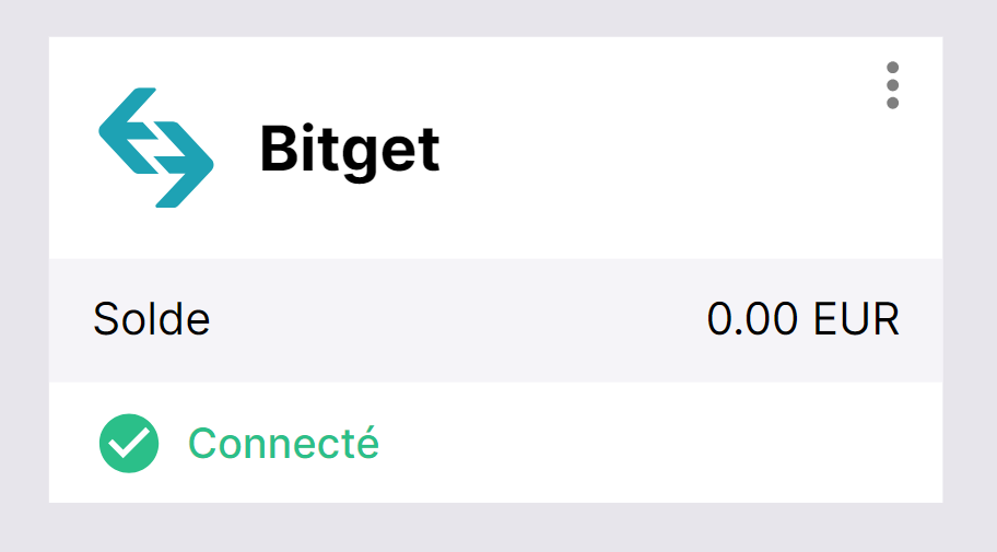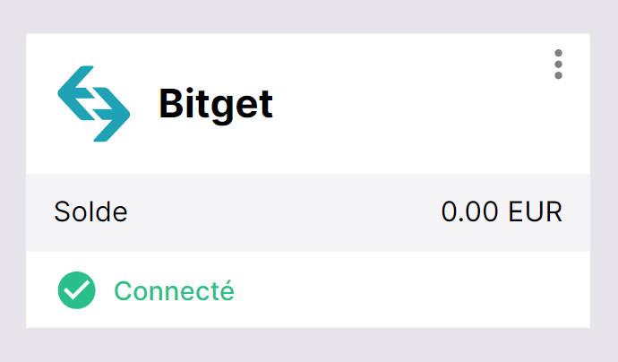 Si tout est fait correctement, vous verrez Bitget ajouté à la liste de vos échanges connectés avec le statut « Connecté » et le solde disponible sur votre compte.