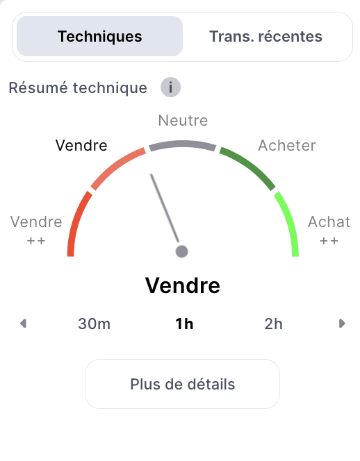 L'outil Techniques d'Analyse est un outil d’analyse technique qui combine les signaux de plusieurs indicateurs et oscillateurs. Ce widget facilite l’identification des conditions de marché potentiellement favorables pour passer un ordre.