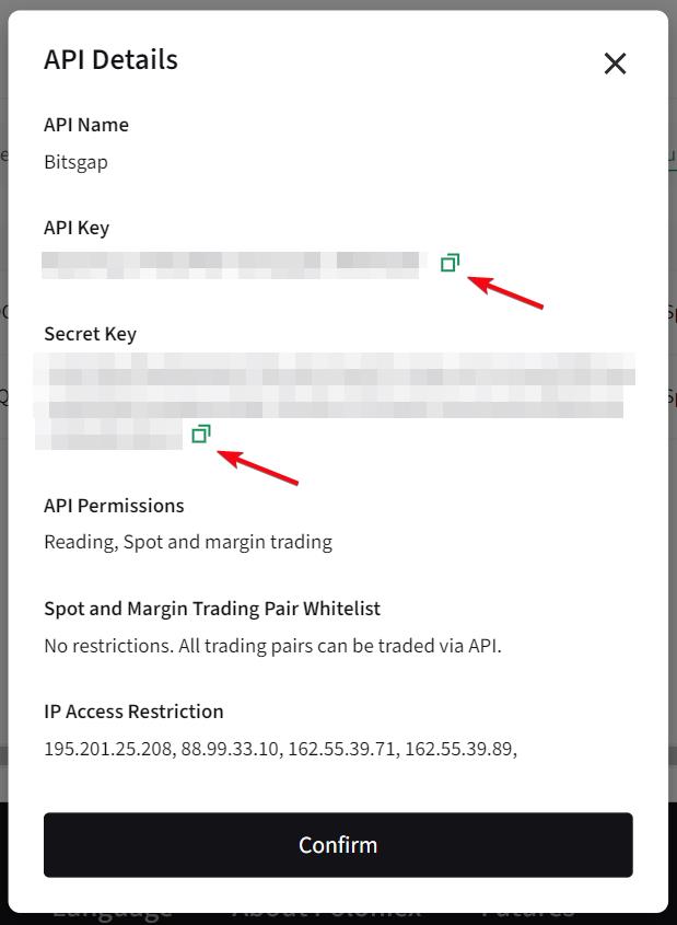 8. Copy Your API Key and Secret Key