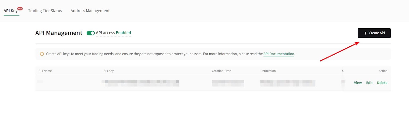 Return to Poloniex and click on the Create API button to generate a new API key.