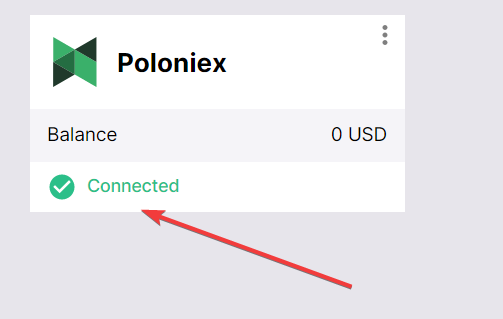 - If the connection is successful, you will see Poloniex added to your list of connected exchanges in Bitsgap.