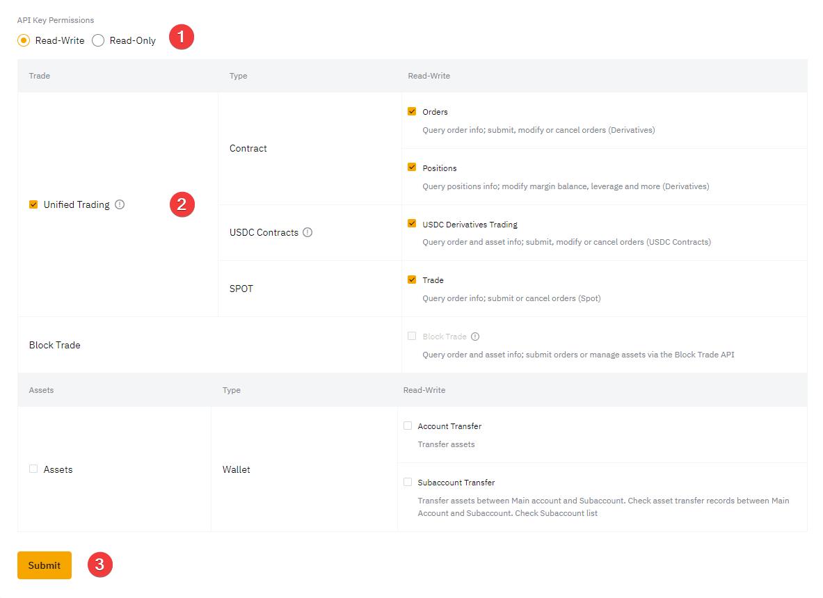 - Unified Trading - USDC Contracts: Enable USDC Derivatives Trading (optional).