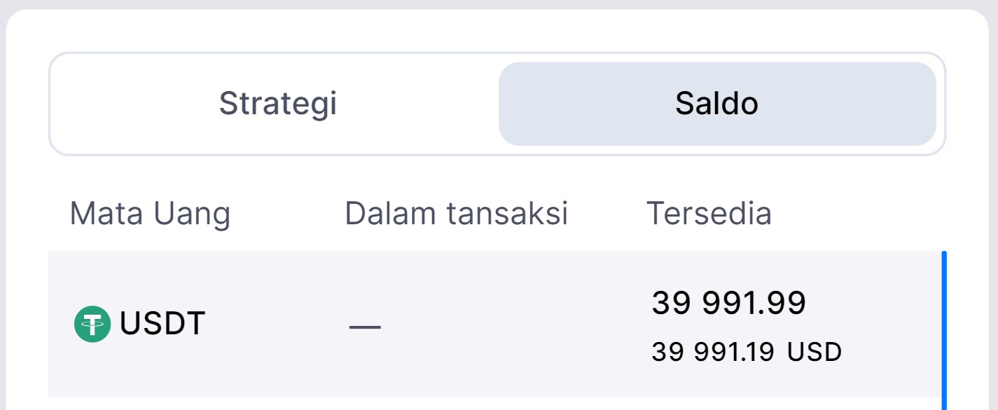 - Saldo tersedia: 39.991,99USDT