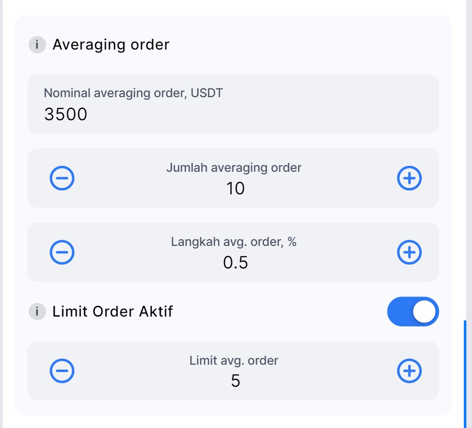 Catatan Penting: Setelah Bot DCA diluncurkan, Anda tidak dapat mengaktifkan atau mengubah batas order aktif. Pastikan fitur ini diatur saat konfigurasi awal.