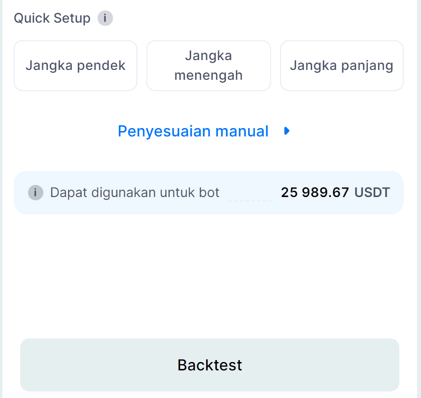 - Buka bagian Penyesuaian Manual (Manual Adjustment) saat mengatur Bot DCA Anda.