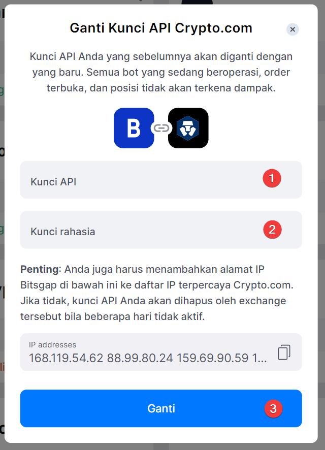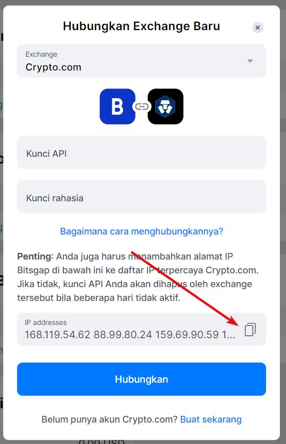 7. Pilih Crypto.com dan salin alamat IP Bitsgap