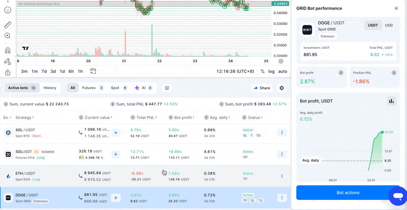 - Penangguhan Trailing: Saat menambah dana, trailing untuk semua GRID bot aktif akan dijeda untuk menghindari konflik pada saldo