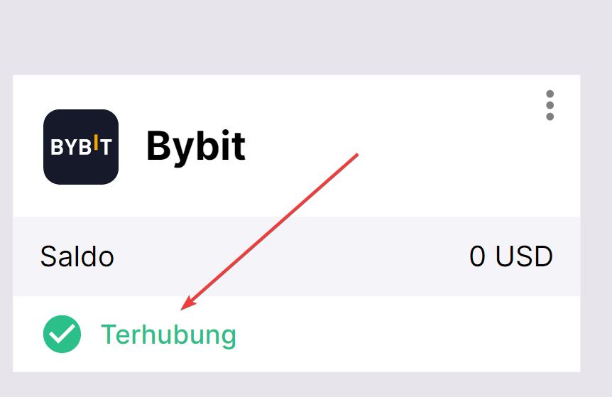 Bila semua langkahnya benar, Anda akan melihat Bybit ada di daftar exchange dengan status Terhubung dan saldo trading tersedia di akun Anda.