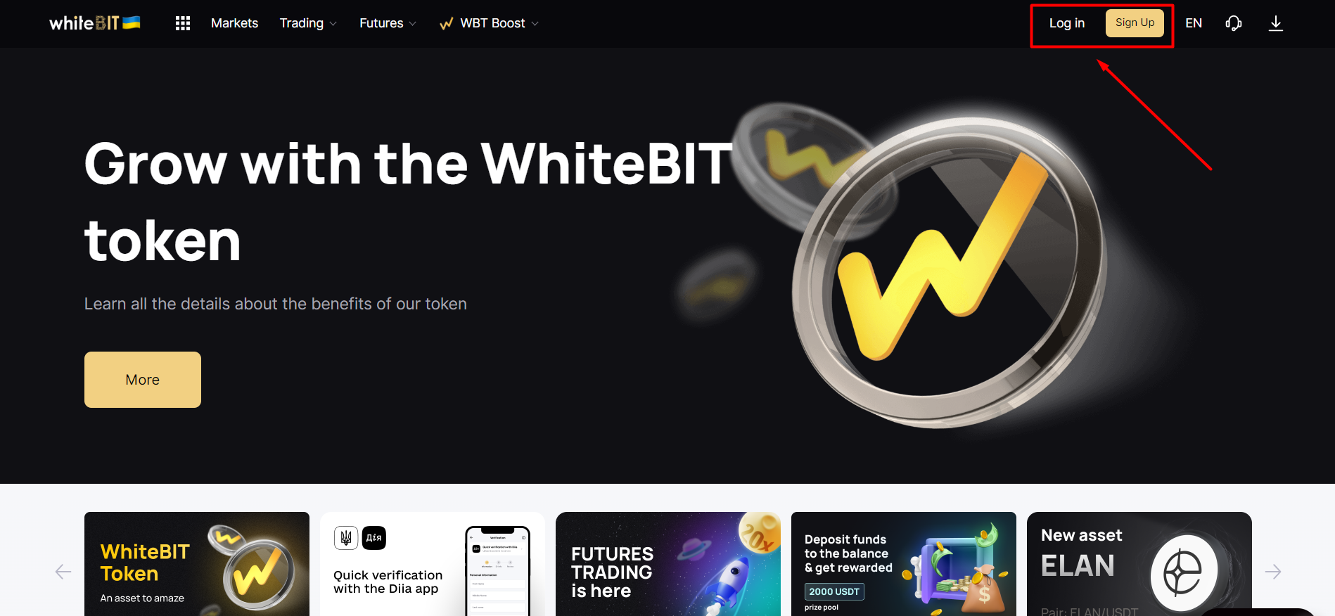 Masuk ke akun WhiteBIT Anda atau buat akun baru.