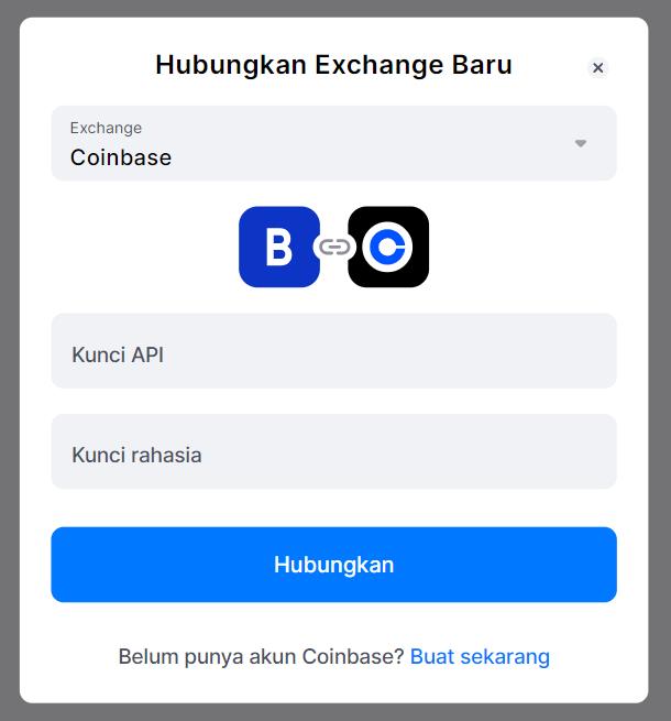 Untuk menambahkan kunci API Coinbase Advanced Trade Anda, cari exchange di jendela pop-up. Jendela di mana Anda harus menambahkan kunci akan terbuka.