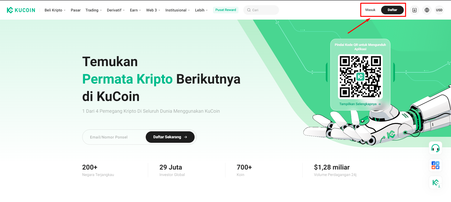 Masuk ke akun Kucoin Anda atau daftar akun baru.