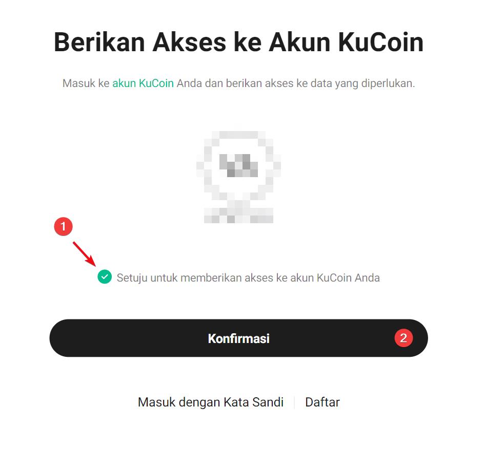 Anda akan diarahkan ke situs web Kucoin, di mana Anda harus menyetujui untuk memberikan akses ke akun Kucoin Anda.